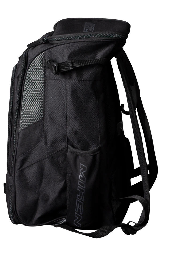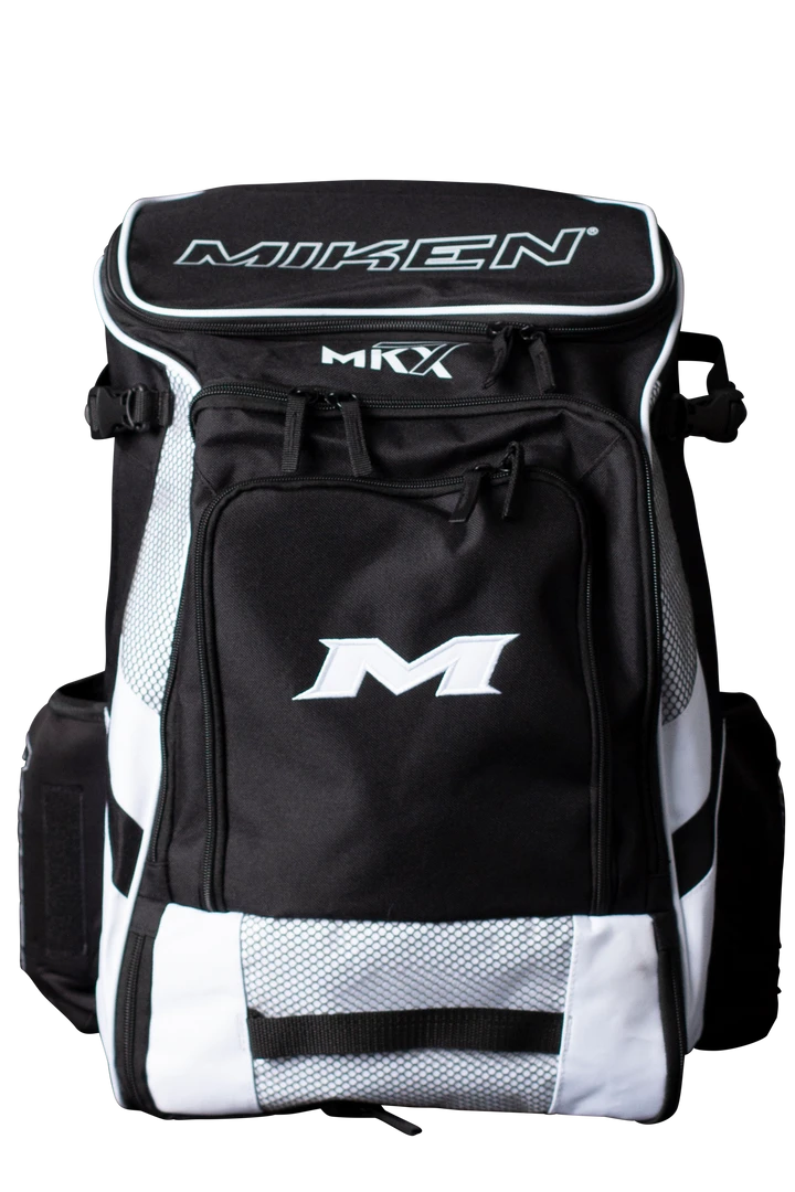 The all new Miken Backpack features: 2 elasticized neoprene bat