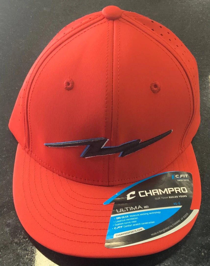 Pauer Sports Headwear Pauer SHOWTIME Bolt Ultima Fitted Cap – Red/Black/Columbia
