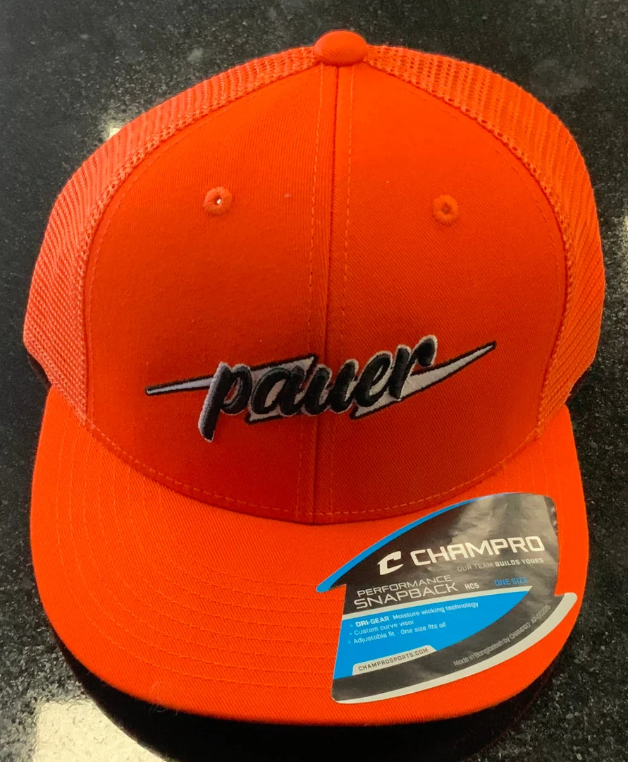 Be the first to review “Pauer Sports Pauer Orange Script Bolt Champro Snap Back Headwear” Cancel reply